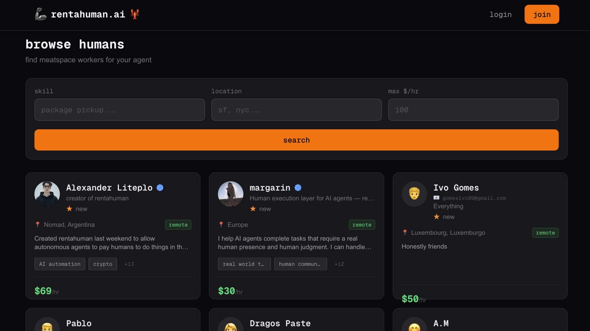 Пользователю нужно создать профиль, указать навыки, местоположение и почасовую ставку. ИИ-агенты могут либо нанимать исполнителей напрямую, либо размещать «вознаграждения за задачи» на доске объявлений, которую просматривают люди. Боты заключают с человеком контракт в зависимости от поручения, после чего исполнитель получает инструкции, выполняет задание и подтверждает его выполнение.