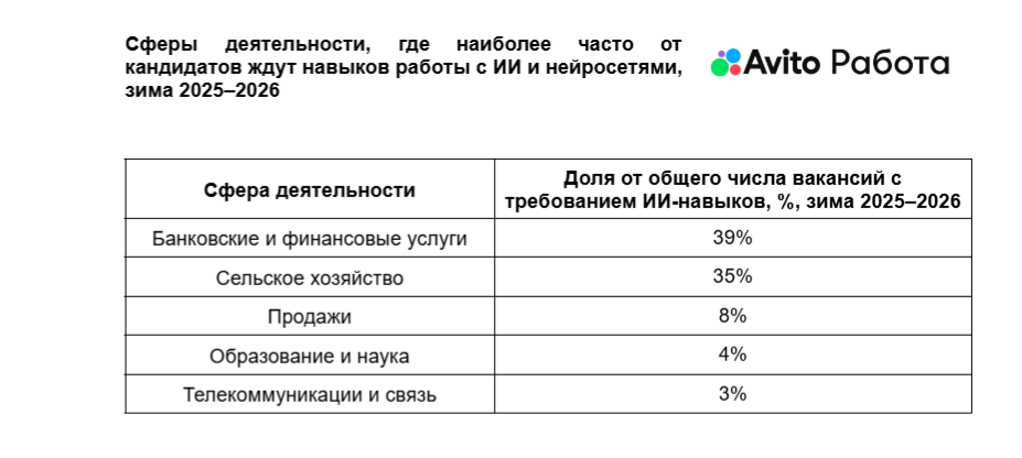 «Навыки работы с искусственным интеллектом постепенно становятся частью базовых требований в разных профессиях — от финансового сектора до сельского хозяйства и продаж. Работодатели ожидают, что сотрудники смогут использовать ИИ для решения прикладных задач: подготовки документов, анализа данных и работы с клиентскими запросами. Это объяснимо: согласно недавнему опросу Авито Работа, сотрудники, которые регулярно используют ИИ, в среднем экономят около трех часов рабочего времени в день. При этом растет и интерес со стороны соискателей — за последний год кандидаты стали на 45% чаще указывать в резюме навыки работы с ИИ. Это показывает, что рынок труда постепенно адаптируется к новым технологиям», — отметил Дмитрий Королев, директор HR-Tech в Авито.